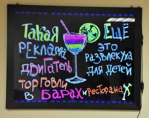 Добро пожаловать в ХХI век! Led-панель — новый вид световой рекламы. Мощный инструмент для привлечения внимания кого угодно. Led-панель (их ещё называют-флеш панель, флоуресцентная доска, светящаяся доска)- это панель из стекла или акрила обычно в алюминевой рамке. Размещённые по периметру рамки светодиоды обеспечивают ровный (если надо мерцающий) свет. Теперь нет необходимости каждый раз тратиться на наружнюю рекламу. Теперь каждый обладатель такой светящейся доски сам пишет или рисует на ней разноцветными флоуресцентными маркерами (в комплекте) всё, что угодно. Примечательно, что такую светящуюся рекламу видно, как днём, так и в тёмное время суток. Вот лишь некоторые возможности Led-панели: меняй рисунки (надписи) сколько угодно; — не нужно никаких специальных навыков; — рисунки стираются салфеткой из микрофибры (в комплекте); — доска светится, мигает, переливается, затухает, загорается вновь… Пройти мимо не заметив просто невозможно. Работает от сети 220В, минимальная потребляемая мощность. Самый популярный размер 60х80 см. В комплекте: led- панель, набор маркеров, салфетка из микрофибры, сетевой кабель.