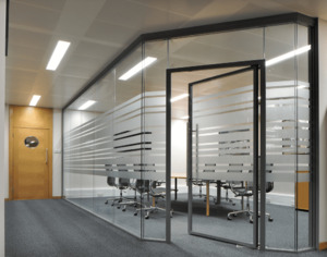 Цельностеклянные перегородки представляют собой бескаркасную конструкцию и выполняются из закалённого стекла, зажимного профиля или точечных стеновых коннекторов. Стекла соединяется между собой Стык в стык и имеют технологический зазор 3 мм. Толщина стекла в перегородках составляет от 8 до 12 мм.