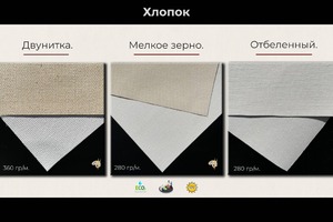 Натуральные материалы: 100% хлопок, полулен. Также производим синтетический холст.