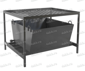 Стол для слива предназначен для безопасного слива электролита из аккумуляторных батарей в ванну, находящуюся под решетчатой столешницей. Производится данное изделие в двух исполнениях: из нержавеющей стали и с полимерно-порошковым покрытием.