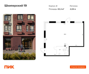 Общая площадь, м²:92.4