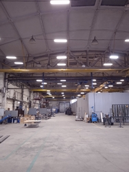 Производственно-складское, теплое помещение, общей площадью 2850 кв. м. (из них 635 кв. м. административные, подсобные помещения – душ, с/у, раздевалки), шаг колонн 18*24, высота потолков 7-12 метров, автоматические роллерные ворота «HORMANN» с калиткой, под еврофуру размером 4,5 м (высота)*4 м (ширина) – 1 шт, распашные двустворчатые ворота размером 5.5 м – ширина*5,5м высота, тепловые завесы – 4 шт, кран-балки на 2 т. каждая в количестве 4 шт. (расположение кранбалок – поперек помещения, высота подъёма груза – 5 метров). Имеются водопровод, канализация, отопление. Полы выровненные, бетонная стяжка с антипылевым покрытием, нагрузка на пол – 5 тонн/кВ. м.