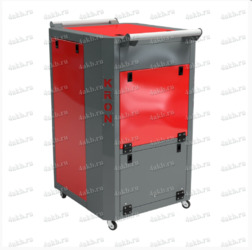 Установка для заливки электролита УЗЭ-001 от российского производителя предназначена для мобильного обслуживания и заправки АКБ электролитом с использованием пистолета-дозатора. Пистолет-дозатор расположен в нижнем открывающемся ящике. Установка оборудована проводом электропитания длиной 10 м, баком на 55 литров для элетролита и перекачивающим кислотостойким насосом.