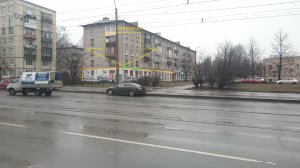 Густонаселенный жилой массив. Витринные окна. Рядом перекресток и остановка.