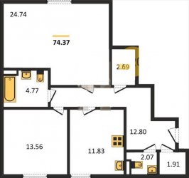 Общая площадь 74,37м2